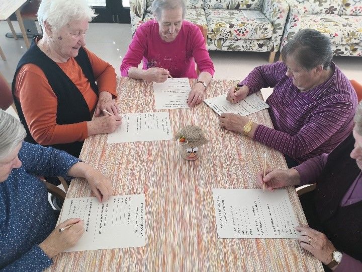 Na svetu je že 49 milijonov ljudi, ki trpijo za demenco, ta številka pa naj bi se do leta 2050 potrojila. Zato temu področju posvečava še posebno pozornost. Mednarodni dan delovne terapije, 27. oktober, je pri nas letos posvečen prav temu področju. Za stanovalce smo pripravili kviz, ki je spodbudil razmišljanje, spomin in orientacijo v kraju ter času. Naše druženje je bilo prijetno in stanovalci so bili zelo zadovoljni, za kar se tudi trudiva.