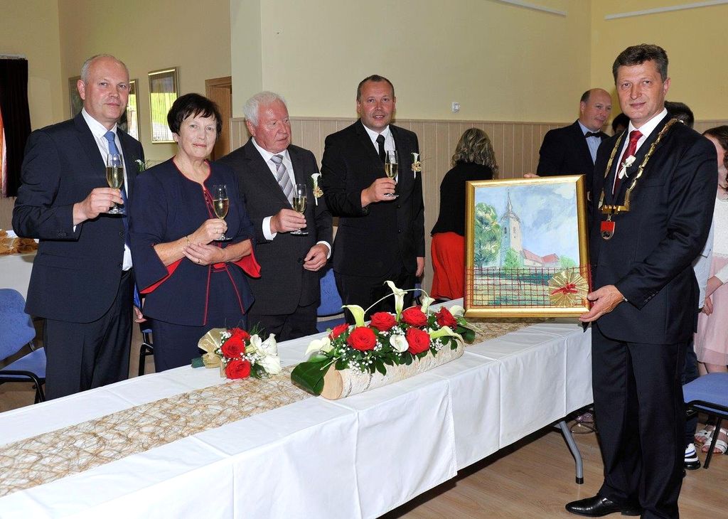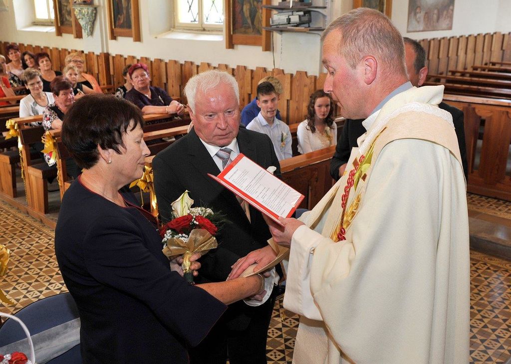 Slovesni cerkveni obred zlate poroke oziroma 50 let skupnega življenja je v domači cerkvi daroval župnik Damjan Ratajc iz Prebolda, civilni obred zlate poroke je opravil polzelski župan Jože Kužnik, slovesnost pa so polepšali domači cerkveni pevci.