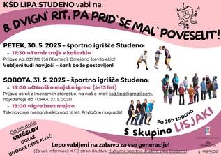 V PETEK 30. 5. 2025 se bo v Studenem pri Postojni začela prireditev Dvign' rit pa prid se mal poveselit