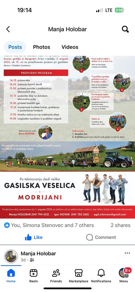PGD Sv. Lovrenc vas vabi na 41. TEKMO KOSCEV, GRABLJIC IN ŠTANGARJEV v nedeljo, 3. avgusta od 15. ure dalje. Moderator prireditve bo že 31. Boris Kopitar. Po tekmovanju sledi velika vrtna veselica z ansamblom MODRIJANI.