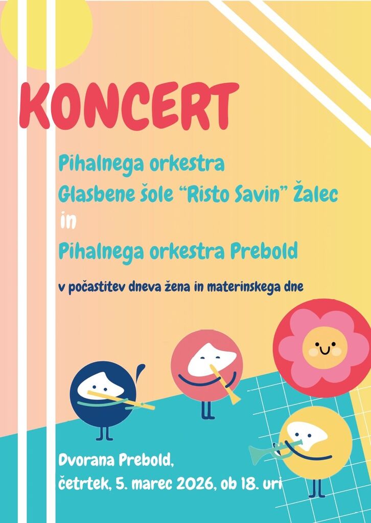 Vabljeni na koncert Pihalnega orkestra Glasbene šole Risto Savin Žalec in Pihalnega orkestra Prebold, v počastitev dneva žena in materinskega dne.