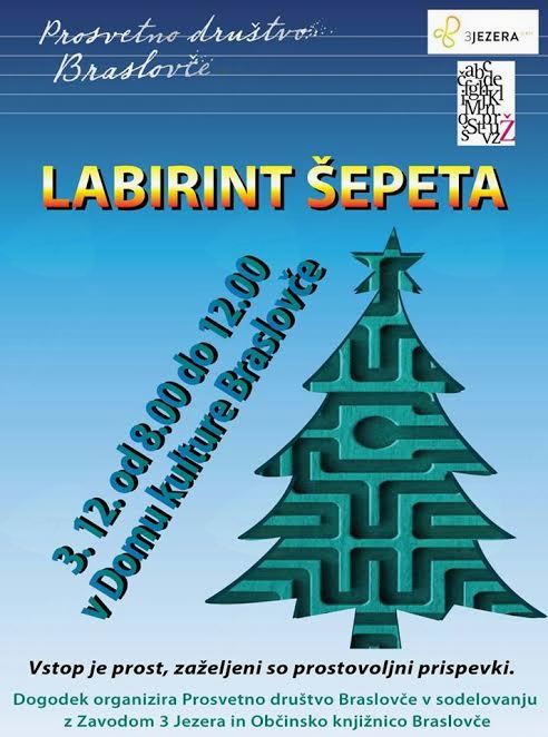 Vabljeni v "Labirint šepeta", kjer boste na poti, prepredeni z zanimivimi nalogami in doživljaji spoznavali, kako so adventne večere preživljali naši babice in dedki. Pridružite se nam v Domu kulture Braslovče in sooblikujte adventno pravljico!