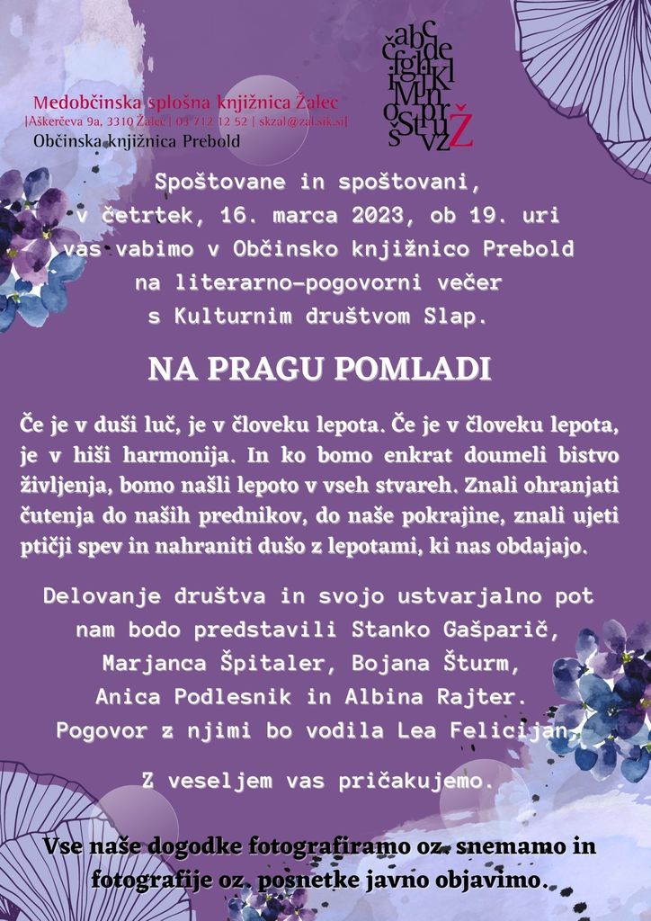 Kontaktni podatki organizatorja: Lea Felicijan, lea@zal.sik.si.