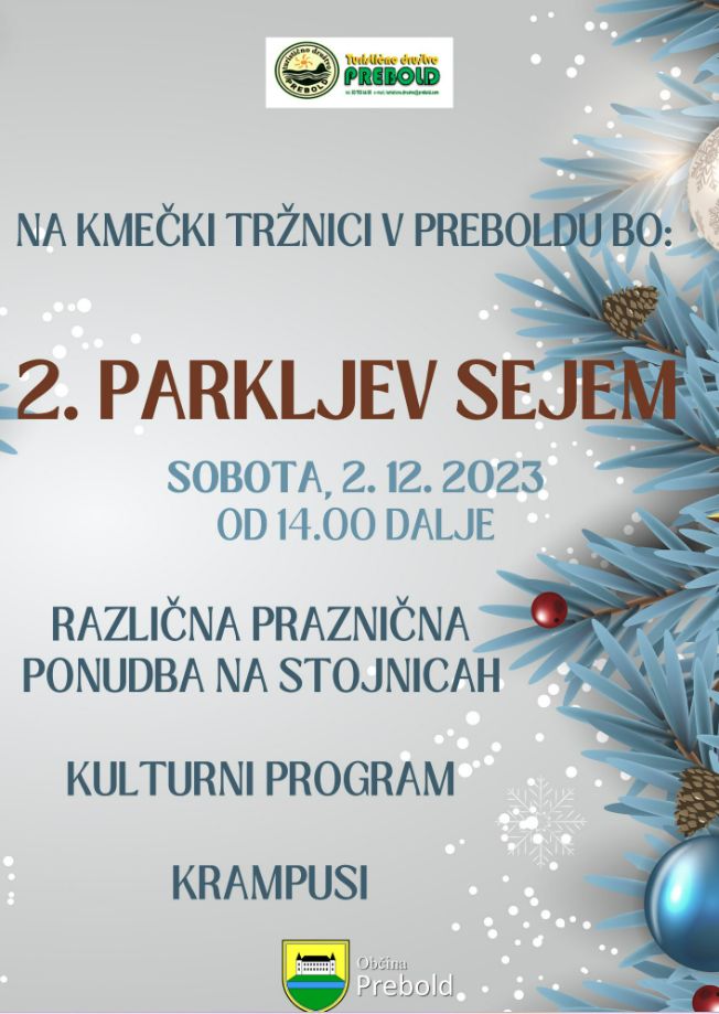 Turistično društvo Prebold vabi na 2. parkljev sejem, ki se bo začel v soboto 2. 12. 2023 od 14.00 dalje.