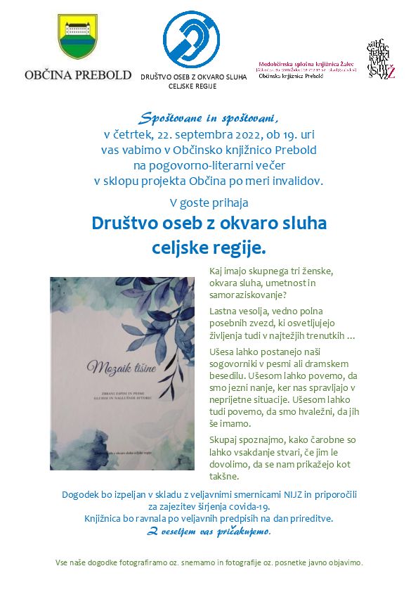 Pogovorno literarni večer - Društvo oseb z okvaro sluha celjske regije