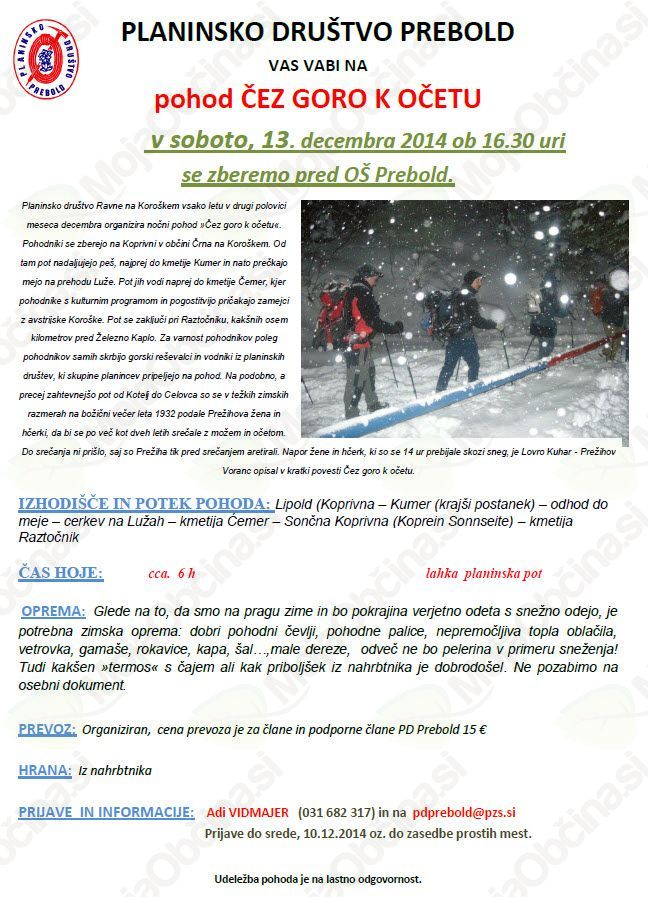 Organizator: PLANINSKO DRUŠTVO PREBOLD