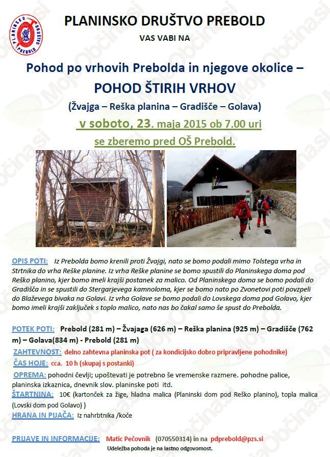Organizator: PLANINSKO DRUŠTVO PREBOLD
