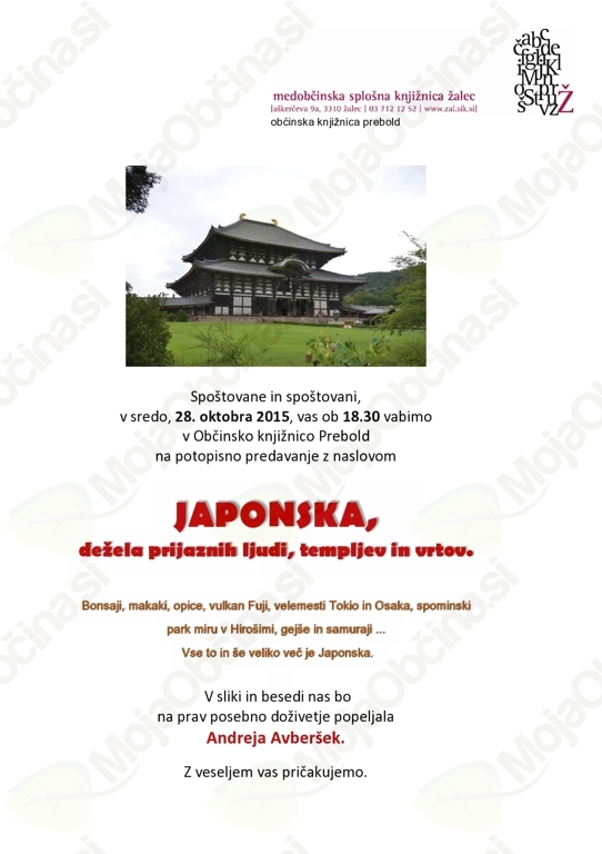 POTOPISNO PREDAVANJE Z NASLOVOM JAPONSKA, DEŽELA PRIJAZNIH LJUDI, TEMPLJEV IN VRTOV