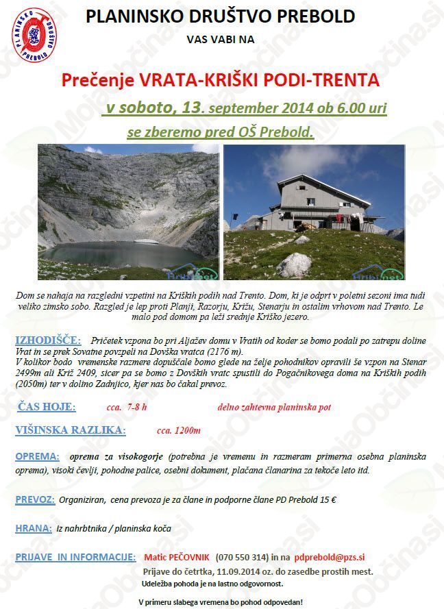 Organizator: PLANINSKO DRUŠTVO PREBOLD