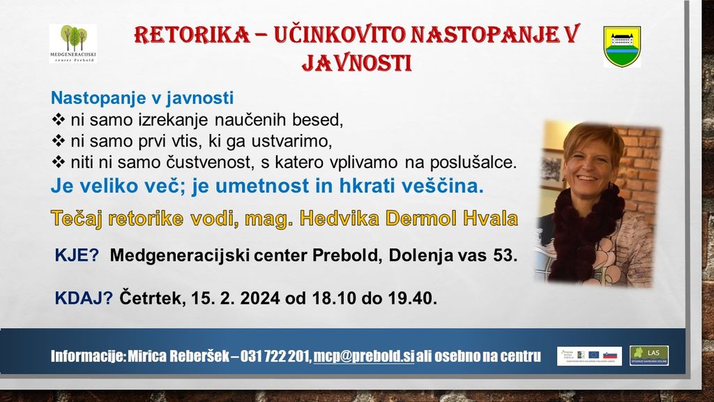 Informacije: 031 722 201 Mirica Reberšek, e-pošta: mcp@prebold.si, ali osebno na centru.