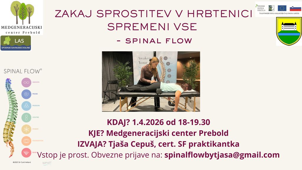 Udeleženci bodo spoznali principe Spinal Flow tehnike in dobili vpogled, kako ta metoda pomaga telesu ponovno vzpostaviti ravnovesje ter izboljšati splošno počutje.