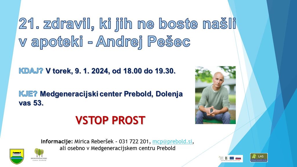Informacije: Mirica Reberšek 031 722 201, mcp@prebold.si ali osebno na centru
