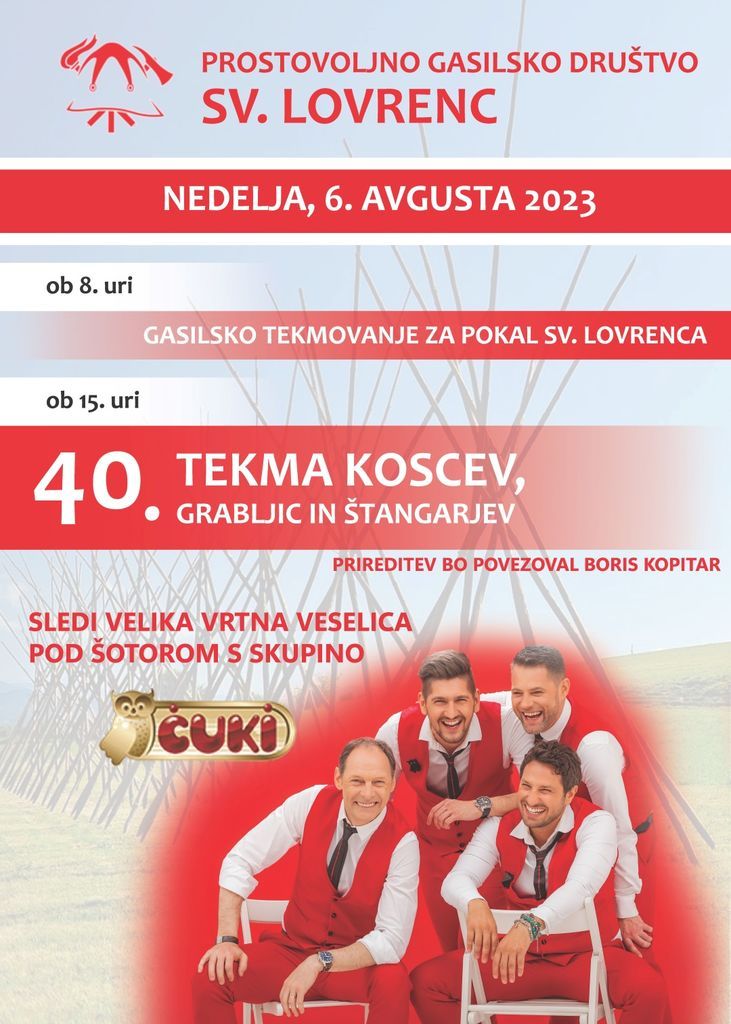 Vabljeni na 40. tekmov koscev, grabljic in štangarjev v nedeljo, 6. avgusta 2023 v Sv. Lovrencu: