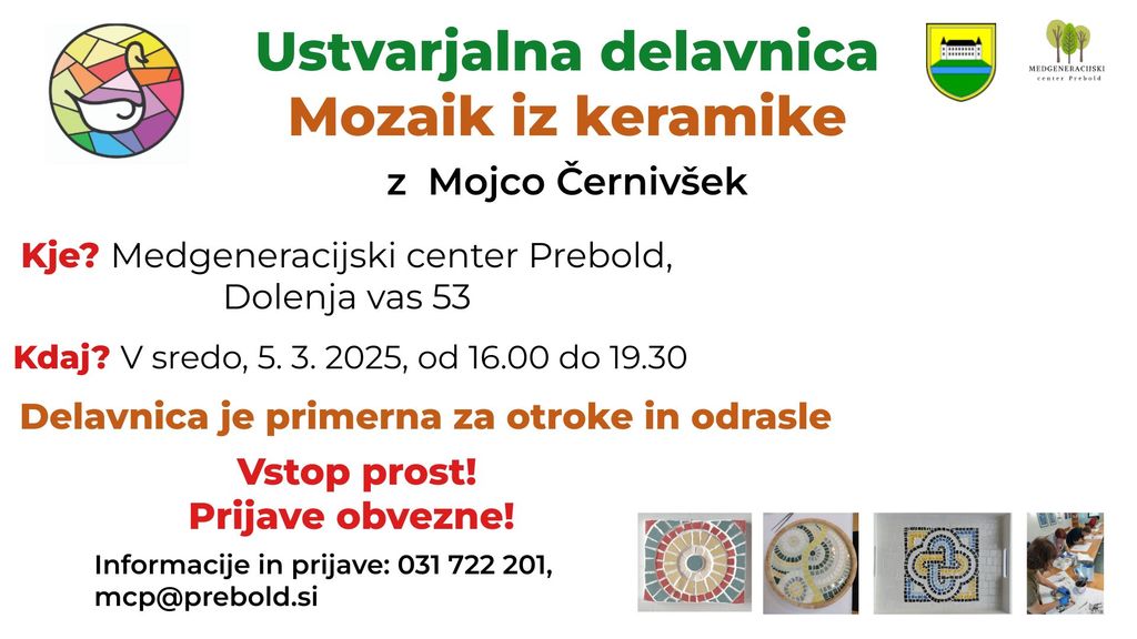 Pridružite se nam na navdihujoči ustvarjalni delavnici, kjer bomo iz barvitih koščkov keramike ustvarjali unikatne mozaike!