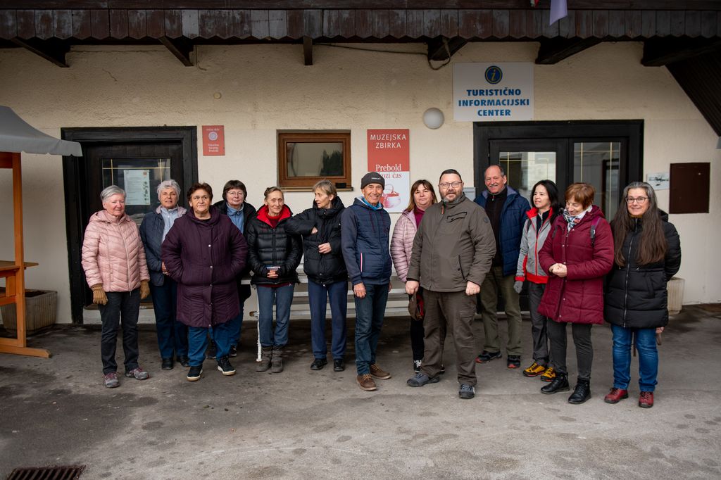 V počastitev Mednarodnega dneva turističnih vodnikov smo se v soboto, 18.2.2023 v dopoldanskem času v lepem številu sprehodili skozi Prebold in si ogledali nekaj ključnih kulturno, zgodovinsko in turistično opredeljenih znamenitosti kraja. V lepem številu smo se zbrali pred Muzejsko zbirko Prebold skozi čas, kjer je mag. Uroš Herman opozoril na informacijsko tablo, ki stoji ob parkirišču in na kateri je opisana zgodovina kraja ter je z njo opredeljen pomen zbirke. Pot smo nadaljevali preko starega betonskega mostu čez Bolsko iz leta 1927 in mimo novega dela stanovanjskih objektov, zgrajenih na nekdanji gmajni, ki nosi ime Na zelenici. Ob poti smo občudovovali poslikavo pri Domu godbenikov, katero je v lanskem letu ustvaril domačin - slikar Žiga Hriberšek. Ustavili smo se pri Graščini Prebold, ki je druga grajska stavba v kraju, saj je bila predhodna, grad Liebenštajn, postavljena na pobočju Žvajge in porušena že v času srednjega veka. Graščina Prebold je bila zelo pomembna za zgodovino, saj je bil v njej precej časa sedež obsežne zemljiške gospoščine, po tem pa je v njej prebival eden najbolj enigmatičnih Preboldčanov – baron Rudolf Adam von Hackelberg Landau, ki je bil tudi nekaj let preboldski župan.