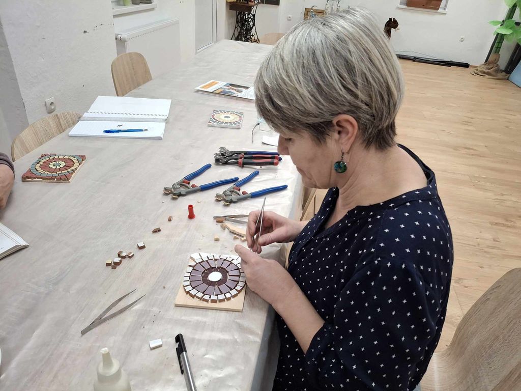 Pod strokovnim vodstvom gospe Mojce Černivšek, mojstrice mozaika iz različnih materialov, smo se naučili tehnike, ki jo lahko uporabimo tudi pri vsakdanjih ustvarjalnih projektih.