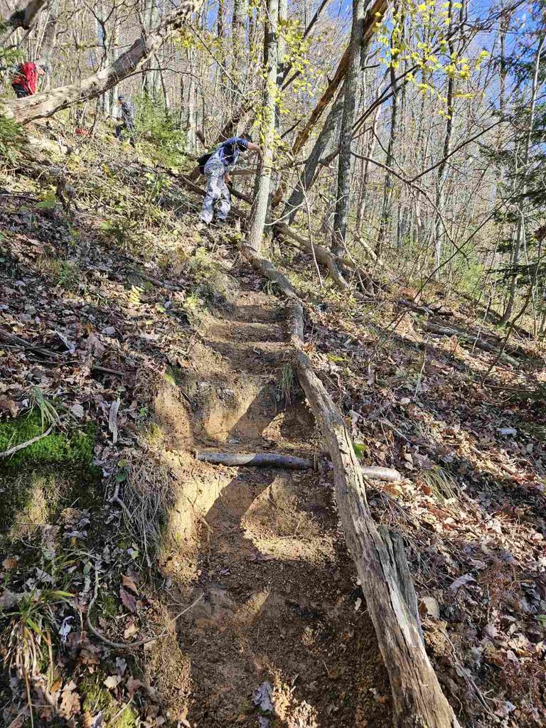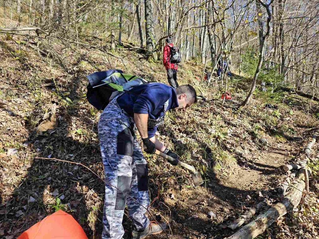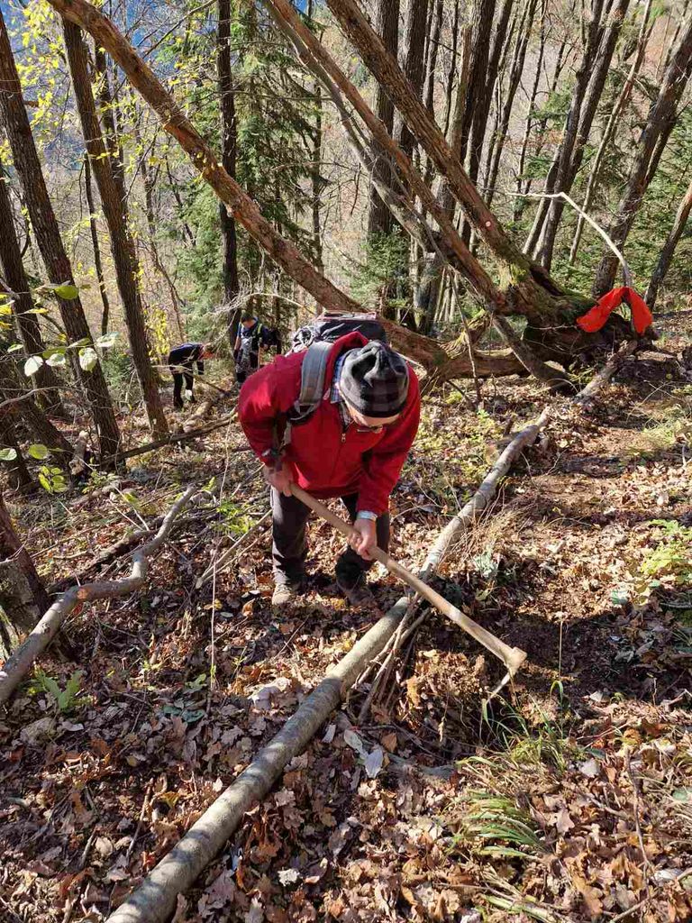 Druga skupina se je podala na planinsko pot proti Adijevem bivaku, kjer so naredili dodatne stopnice, založili in razširili planinsko pot.