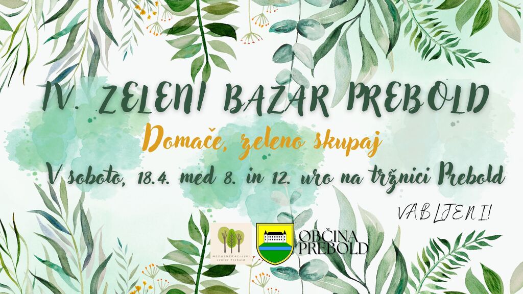 Vljudno vabljeni na IV. Zeleni bazar v Preboldu, ki bo v soboto, 18.4. med 8. in 12. uro na prostoru Kmečke tržnice Prebold.