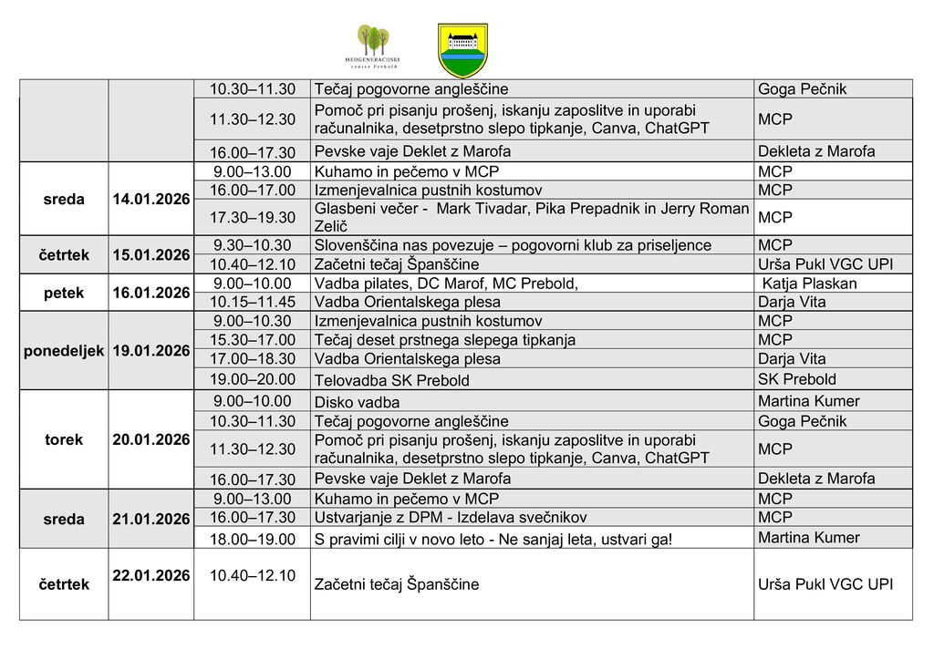 Program pripravljamo za vse generacije. Priložnost za nova znanja, sprostitev, povezovanje in skupne trenutke.