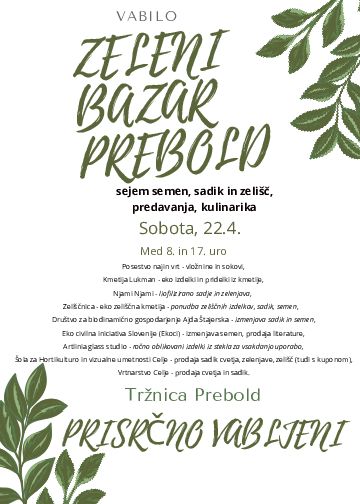Vabljeni v soboto, 22.4. 2023 od 8.00 dalje na dvorišče DC Marof, kjer bo poleg redne kmečke tržnice potekala tudi Cvetlična tržnica, Zeleni bazar in sejem rabljene športne opreme.