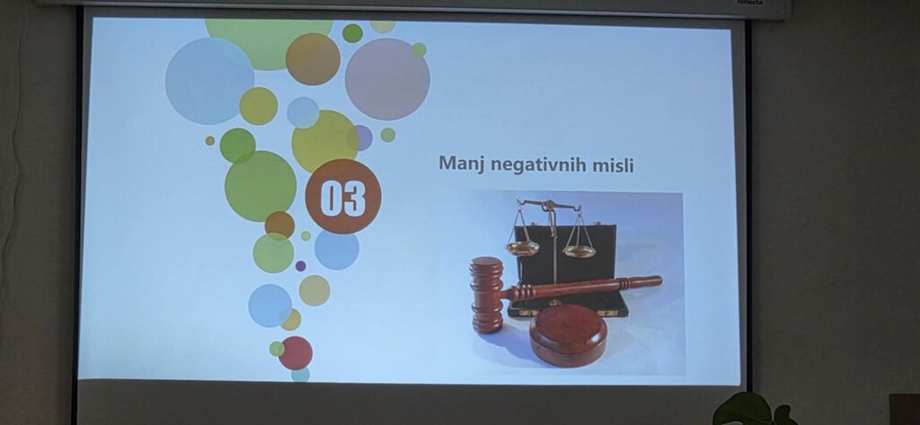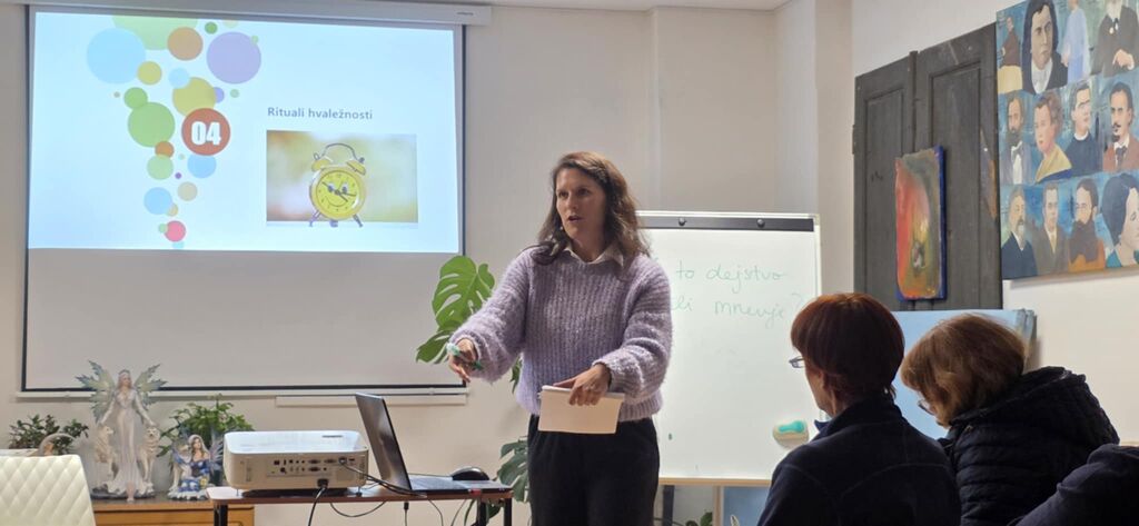 Spoznali smo več praktičnih tehnik, ki nam lahko vsakodnevno pomagajo ohranjati radost, notranji mir in odpornost. Ugotovili smo, da je hvaležnost ena izmed najmočnejših – z njo se poveča občutek zadovoljstva, topline in povezanosti. Prav tako smo poudarili, kako pomembni sta iskrena zahvala in majhna dejanja prijaznosti, ki lahko polepšajo dan tako nam kot drugim.