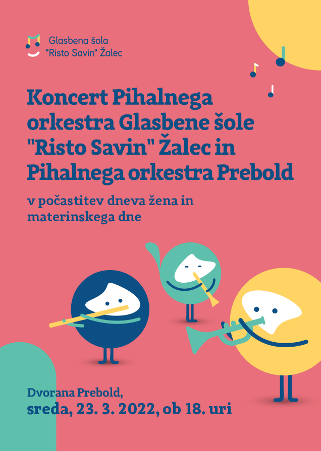 Vabljeni na Koncert Pihalnega orkestra Glasbene šole "Risto Savin" Žalec in Pihalnega orkestra Prebold v sredo, 23. 3. 2022 ob 18.00 v Dvorano Prebold.