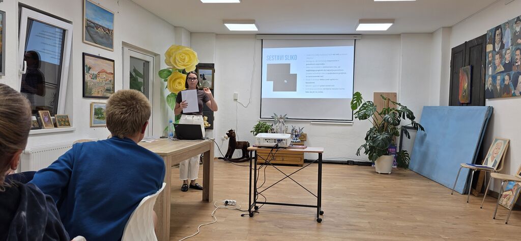 V drugem delu delavnice pa smo se posvetili vajam sodelovanja. Gospa Katarina nam je razdelila liste s podobami, ki smo jih morali opisati tako, da so jih razumeli tudi ostali člani skupine. Nato smo slike skupaj razvrstili v smiselno zaporedje. Naloga je poudarila pomen jasne komunikacije, pozornosti na podrobnosti in medsebojnega usklajevanja.