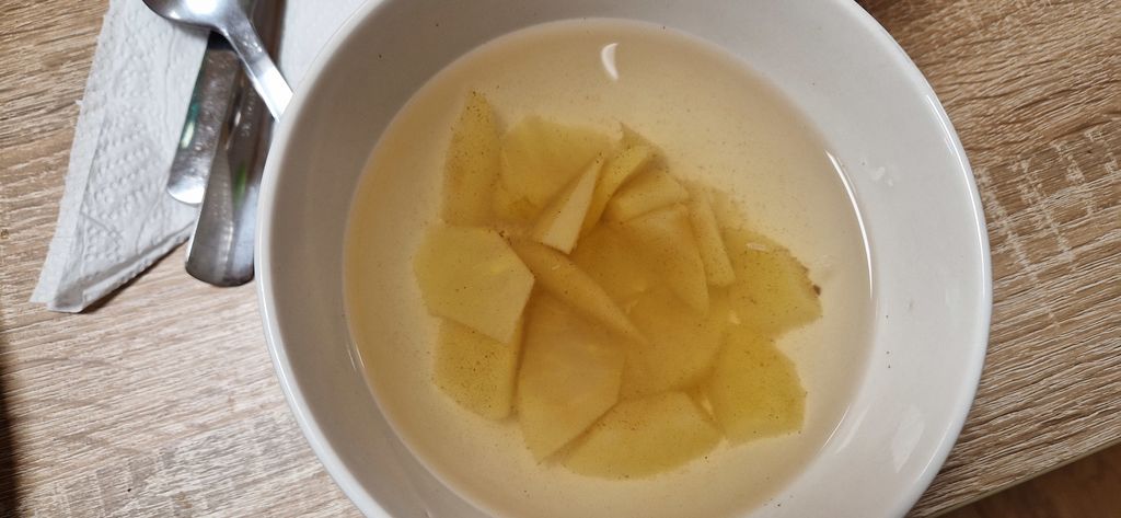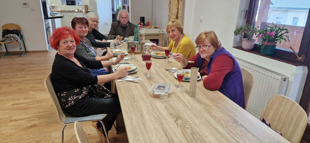 Razvajali smo svoje brbončice z božansko juhico iz govejih mesnatih kosti, nežnimi skutinimi palačinkami in osvežujočim kompotom. Zaključek pa je bil kronan s čudovito tortico.