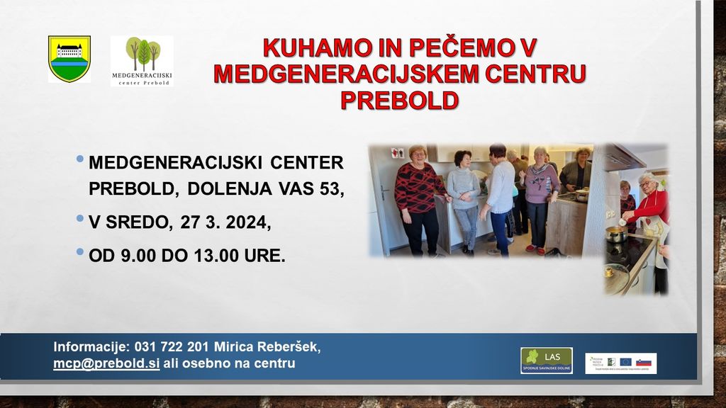 Informacije: 031 722 201 - Mirica Reberšek, e-pošta: mcp@prebold.si, ali osebno na centru.