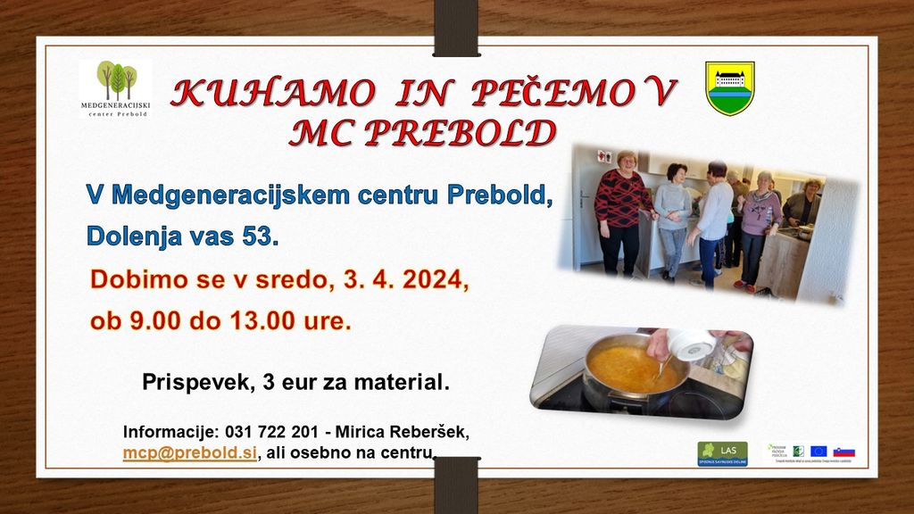 Informacije: 031 722 201 - Mirica Reberšek, e-pošta: mcp@prebold.si, ali osebno na centru.
