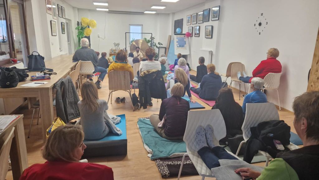 Med meditacijo ob zdravilnih zvokih smo se potopili vase, sprostili napetosti in se učili, kako biti popolnoma prisotni tukaj in zdaj.