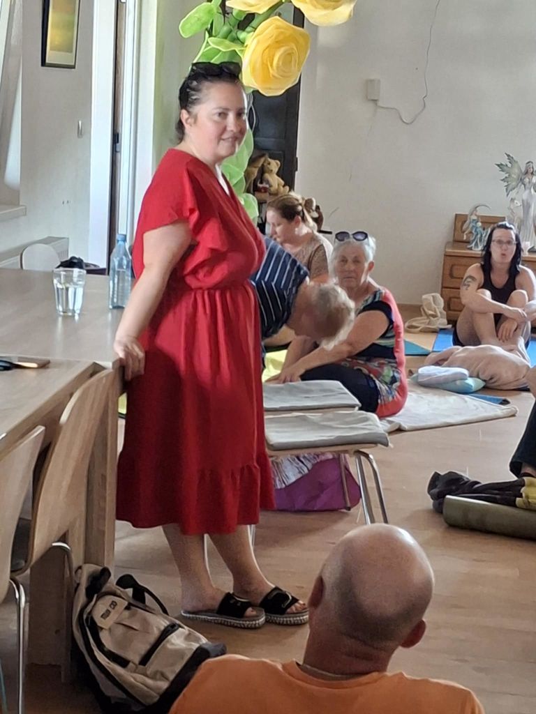 Vendar nas to ni prikrajšalo za lep večer. Prijazno in srčno se je odzvala gospa Andreja Birman, ki je namesto načrtovanega gonga pripravila čudovito vodenje v meditacijo. Ustvarila je varen in pomirjujoč prostor, kjer smo se lahko globoko sprostili, umirili misli in se povezali sami s seboj.