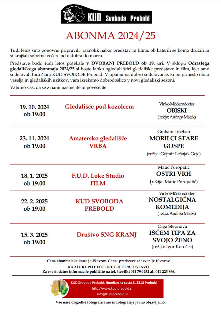 KUD Svoboda tudi v letošnji sezoni pripravlja otroški in odrasli abonma.