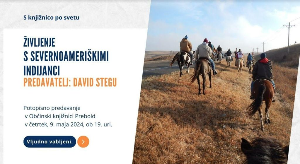 v četrtek, 9. maja 2024, ob 19. uri vabljeni po svetu z Občinsko knjižnico Prebold. David Stegu nam bo predstavil življenje s severnoameriškimi Indijanci.