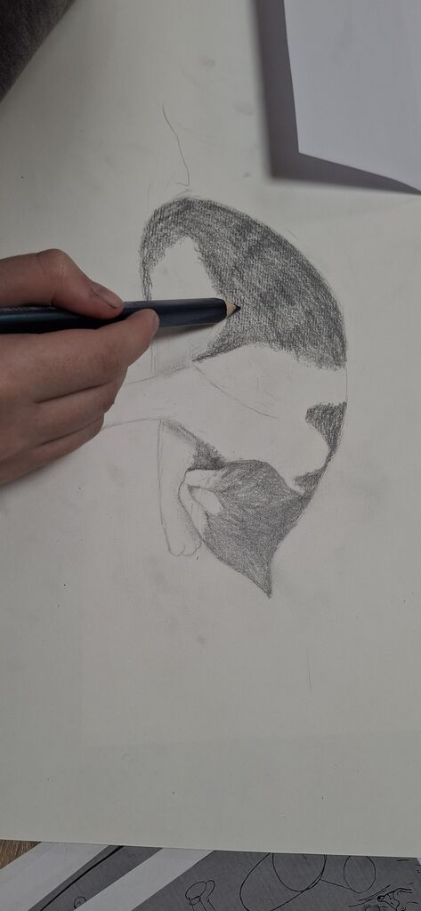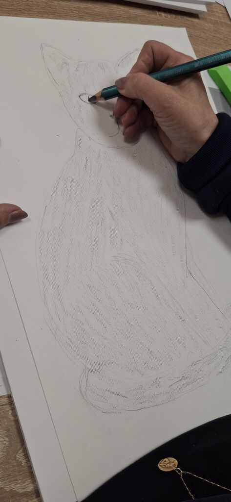 Zbrali smo se z željo po ustvarjanju in z veseljem najprej skicirali motive po načrtih, ki jih je pripravila gospa Jolanda. Nato pa smo pogumno nadaljevali in risbo prenesli na A3 format.