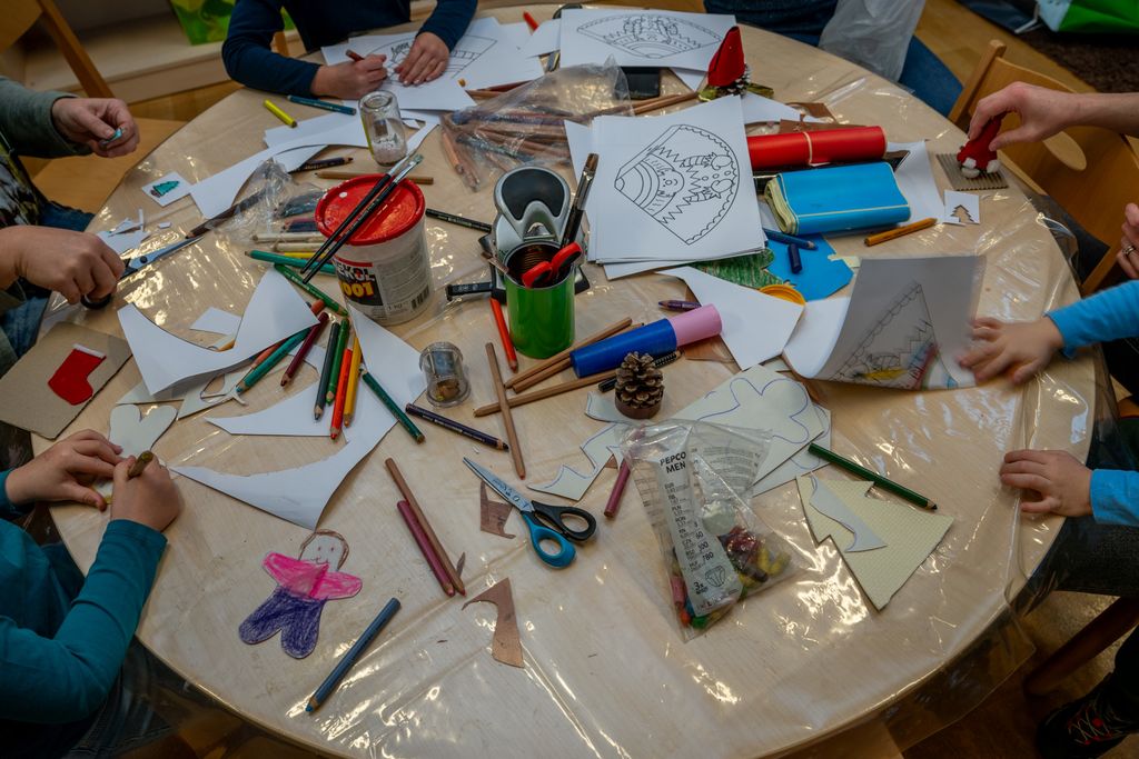 Otroci so skupaj s svojimi najdražjimi ustvarjali pisane novoletne okraske, nastale so tudi krasne papirnate smrečice in risbice s snežaki. Misli so nas popeljale na radostno pot iskanja notranjih zakladov, bili pa smo tudi vzhičeni, ker so pred nami snežne dni, skrivnostni beli svet, ko z iskrico v očeh odmeva zvonki smeh, kot pojemo v znani božični pesmi.