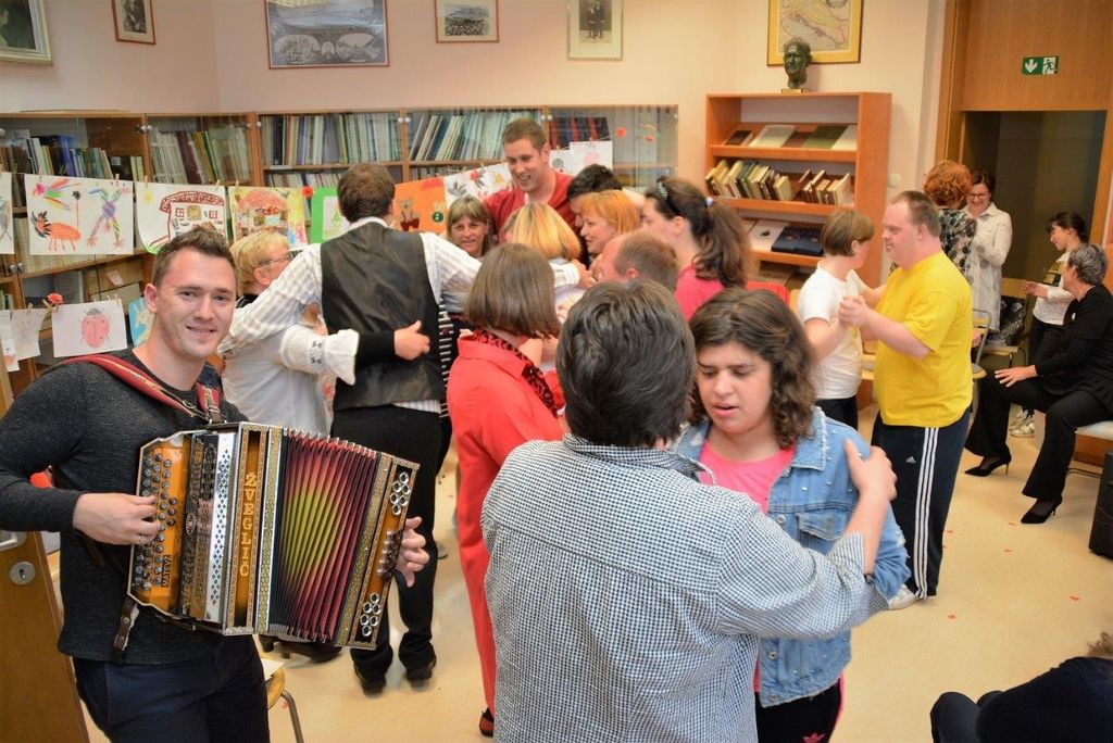 Na zadnje, svečano druženje to sezono je prišlo petnajst varovancev (prvo sezono jih je bilo osem). Prišli so skupaj s starši oz. skrbniki. Vsi so sedeli v krogu, da je med njimi stekla energija. Nad njimi so visele njihove ilustracije, ki so postavljene ena ob drugi bile videti kot prave umetnine. Pozdravila jih je direktorica knjižnice Jolanda Železnik, kasneje je Ireno Štusej varovancem podelila priznanja za skrbno poslušanje in obnavljanje zgodbic. Ko je stopil v prostor Matevž Čadej s svojo harmoniko, je vzdušje zavalovalo od enega k drugemu. Matevž je član ansamblov Akordi in Griški kvintet, trenutno pa sodelavec knjižnice. Ob spremljavi harmonike so zapeli V dolini tihi in Čebelar. Za tem so z Ireno Štusej obnovili nekaj zgodbic, ki so jih najbolj ganile, zapeli pesem Žogice Nogice in pokazali nekaj pantomime. V čokoladni hišici iz pravljice o Janku in Metki pa so se medtem celo znašli mehki sadni bomboni. Kot se za zaključek spodobi, so na koncu ob harmoniki zaplesali.