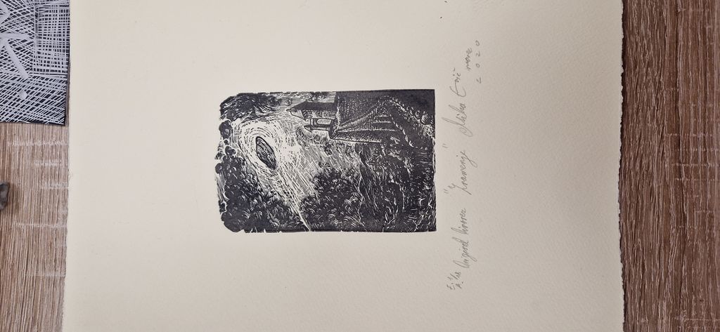 Miha Erič nas je navdušil s svojo vizijo, ko je delil z nami možnost ustvarjanja tudi doma. Z matrico v rokah, ki smo jo odnesli s seboj, nam je razkril skrivnost ustvarjanja brez preše. Z valjarjem in močnim pritiskom na papir  lahko ustvarimo čudovite odtise, ki v vsem svojim sijaju oživijo na papirju ali majčkah.