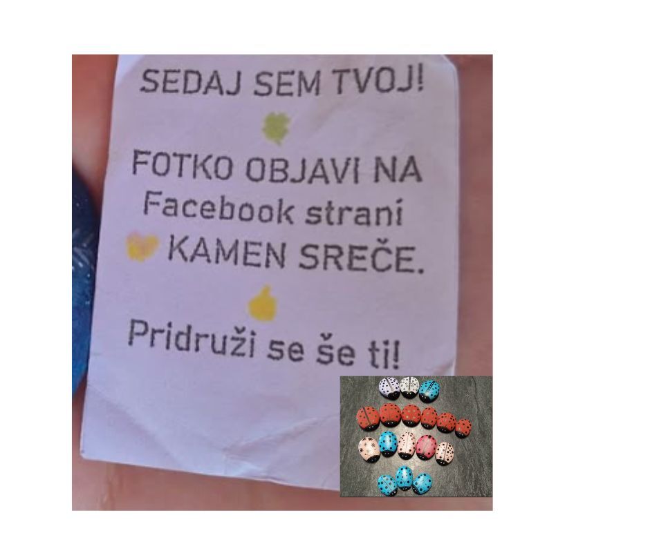 Kdor najde kamenček, ga lahko fotografirate in objavite na Facebook strani Kamen sreče ali nam ga pošljete na mcp@prebold.si. ob tem seveda napišite, kje ste ga našli in če želite, da vas napišemo poimensko.