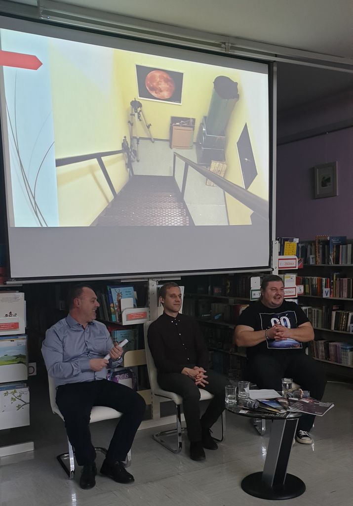 Astronomija je najstarejša naravoslovna veda. Vsakega izmed nas je že kot otroka zanimalo, kaj vse se skriva med svetlimi pikicami, ki nam prebujajo domišljijo v jasni noči. Čeprav znanost skokovito napreduje, nas razvoj te prekrasne vede skozi stoletja pripelje do spoznanja, kako majhni, predvsem pa edinstveni smo na naši Zemlji. Tudi zaradi tega so se v Sloveniji astronomski navdušenci organizirali v številna astronomska društva. Tudi v Astronomskem društvu Saturn, ki že nekaj let uspešno deluje v Trju, člani skrbijo tudi za observatorij Srečka Lavbiča. Predsednik društva Uroš Čotar, podpredsednik Mitja Centrih in tajnik Andrej Šuster so nam odgovorili na nekatera velika vprašanja v astronomiji. Izvedeli smo več o delovanju društva, observatoriju, pojavih v vesolju, Soncu, Luni, naših planetih, oddaljenih galaksijah, se spraševali, ali smo sami v vesolju, kdaj bo človek ponovno stopil na Luno, ali bo vesolje prenehalo obstajati ter še mnogo drugega. Obiskovalci so si lahko ogledali refraktor (lečni teleskop) in reflektor (zrcalni teleskop). Pogovor sta vodili Karmen Kreže in Tanja Pilih.