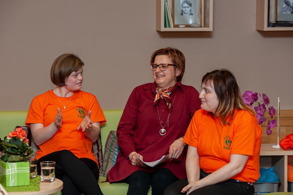 Društvo vključuje osebe z motnjami v duševnem razvoju in njihove družinske člane iz spodnjesavinjskih občin (Braslovče, Polzela, Prebold, Tabor, Vransko, Žalec), povezuje se v mrežo več kot 50 tovrstnih društev v Sloveniji. Približevanje društva v vsa okolja in čim večje poznavanje dejavnosti, ki jih v društvu lahko ponudijo, sta bili tudi povod za sprehod skozi čas v preboldski knjižnici. Beseda je tekla o programih, ki jih društvo izvaja (vseživljenjsko učenje v sklopu varstveno-delovnih centrov, usposabljanje in opolnomočenje družin, športno-rehabilitacijski programi, organizacija in izvajanje posebnih socialnih aktivnosti); izpostavljene so bile razne oblike aktivnosti (plesno-pevska skupina Čokoladke, Bralčki, kino klub, joga, hipoterapija, pohodi, izleti, pikniki, seminarji). K ozaveščanju o delovanju društva pripomore tudi bogata založniška dejavnost v obliki rednih tematskih zbornikov Zveze Sožitje.