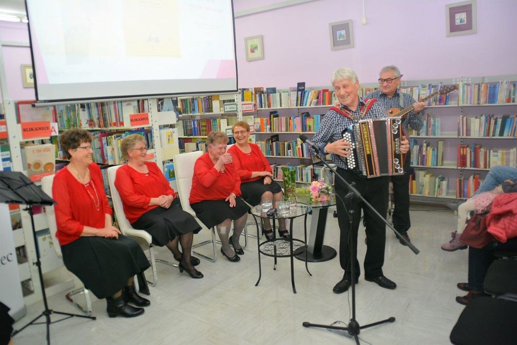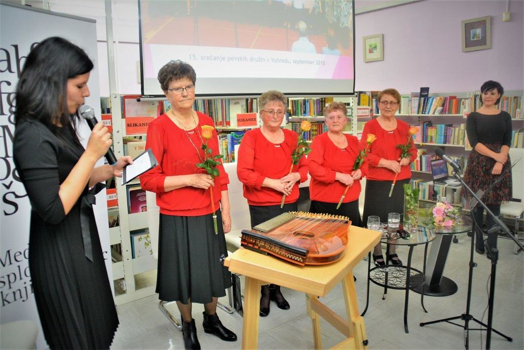 Splošne knjižnice že tretje leto zapored praznujemo teden splošnih knjižnic po vsej Sloveniji. Od 18. do 22. novembra po vseh splošnih knjižnicah poteka bogato dogajanje za vse generacije. Ob tej priložnosti smo na Utrip domoznanstva v Medobčinsko splošno knjižnico Žalec povabili Pevke treh vasi, ki v teh dneh praznujejo svojo 20. obletnico delovanja. Pevke s petjem ohranjajo bogato ljudsko dediščino, obujajo spomine na življenje preteklih rodov, ki je bilo vedno povezano s pesmijo, obenem pa poskrbijo za veselo druženje vseh generacij. Predsednica društva Jožica Sedminek in druge članice, Frida Marinič Lednik, Jožica Ožir in Stanka Žgank, so z obiskovalci delile svoje izkušnje in spomine na pretekla leta. Predstavile so svoje delovanje, nastope in anekdote. Obiskovalci so lahko prisluhnili tudi njihovem petju, ki je marsikoga popeljalo v čas njegovega otroštva. S harmoniko in kitaro sta jih spremljala Alfonz Lesjak in Marjan Lipovšek. Pogovor sta vodili Tanja Pilih in Karmen Kreže. Pevke treh vasi skrbijo, da slovenska ljudska pesem ne bi nikoli izumrla, saj je njena vrednost za slovenski narod neprecenljiva. Skrbijo za ohranjanje ljudskih običajev, ki so zaznamovali preteklost Spodnje Savinjske doline. Zato je njihovo delo dragoceno in pomembno. Aktivno in uspešno delovati 20 let brez prestanka ni kar tako. Tega se zavedamo vsi, še posebno pa njihovi najbližji, ki so jim ob tem jubileju pripravili presenečenje. V goste so povabili priznanega citrarja, pedagoga in glasbenika Petra Napreta. Pevkam treh vasi želimo uspešno delovanje še naprej.