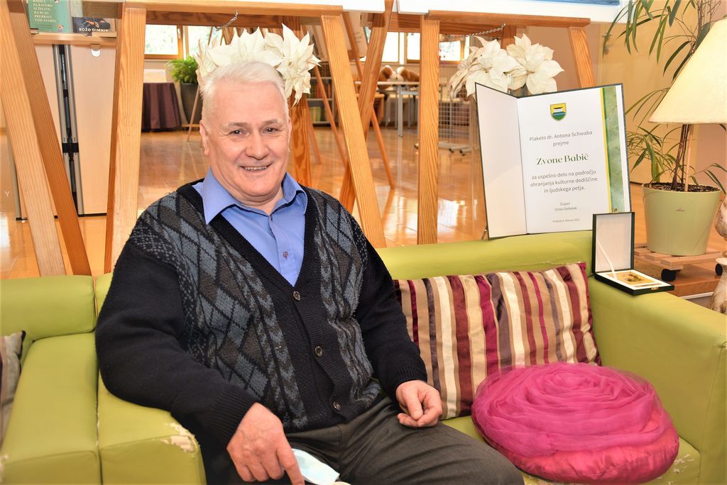 Zvone Babič je neutrudni kulturni delavec, zbiralec pevskega izročila, pevec, ljubitelj ljudske pesmi. Na njegovo pobudo je bilo skozi leta osnovanih več prireditev, npr. Večer na vasi, ki je postal tradicionalna prireditev pod imenom Z ljudsko pesmijo in glasbo v novo leto. Je ustanovitelj skupine ljudskih pevcev Prijatelji 6 še, s katerimi so nanizali zavidljivo število nastopov v domačem kraju in drugje po Sloveniji. Leta 2004 je zaživela prireditev Ljudska pesem v Preboldu, ki so ji pridružili še mednarodni simpozij o ljudskem izročilu. Na njem so predavali ugledni strokovnjaki iz Slovenije in tujine. Nagrajenec je vzpostavil tudi stike z mediji, ki so mu prisluhnili in omogočili predstavitev širši javnosti. Leta 2007 je bilo ustanovljeno samostojno Društvo ljudskih pevcev Prijatelji 6 še. Do zdaj so posneli sedem zgoščenk, precej kompilacij, več kot 20 videospotov in drugih sorodnih materialov. »Imel sem srečo, da sem imel v svojem krogu ljudi, ki so mi zaupali in mi sledili pri odločitvah. Veliko truda smo vložili v zapisovanje in ohranjanje kulturne dediščine ter ljudskega petja, kajti če je to zapisano, ostaja za nami,« je dobitnik plakete v pogovoru med drugim zaupal podžupanu Občine Prebold.