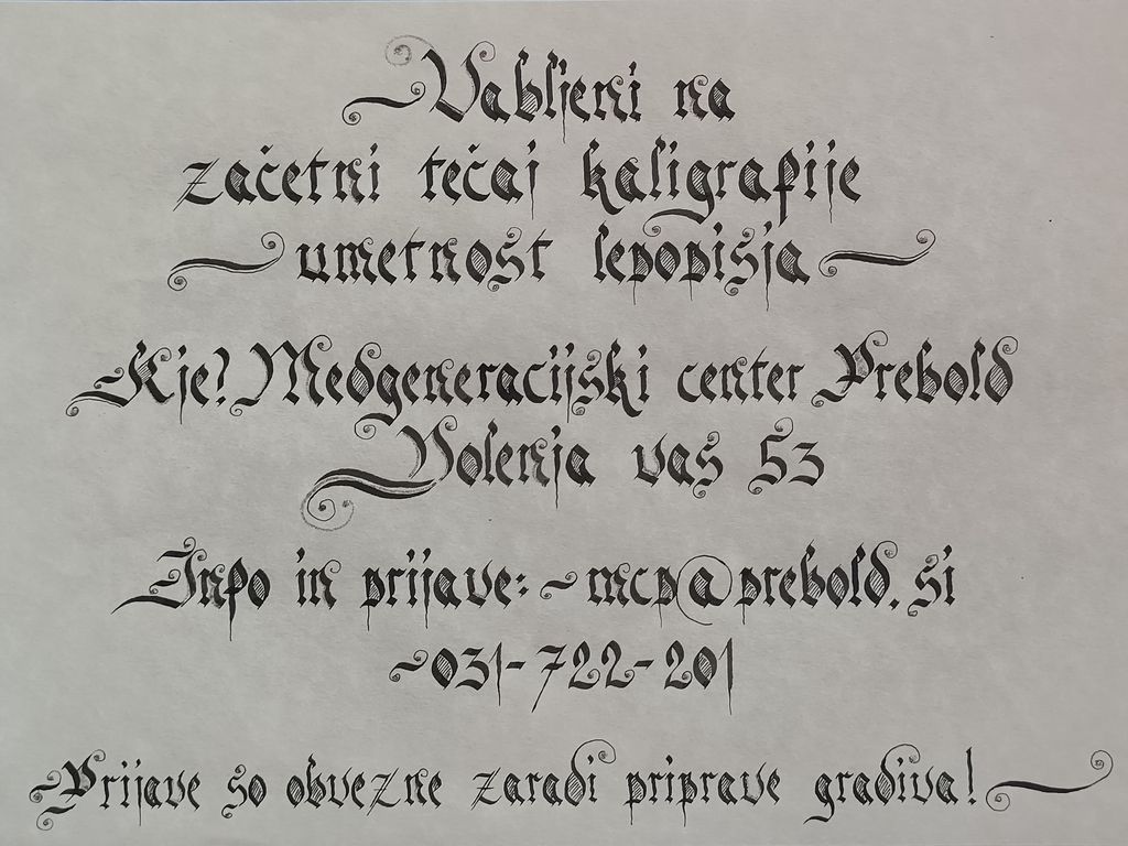 Vljudno vabljeni na začetni tečaj Kaligrafije v Medgeneracijski center Prebold, Dolenja vas 53.