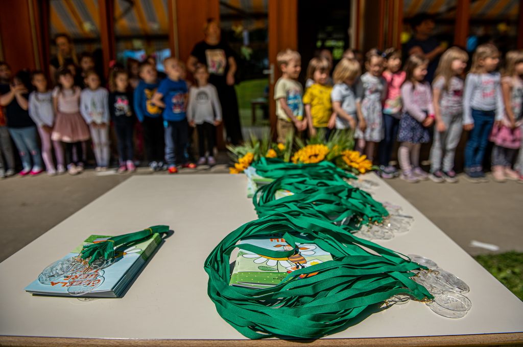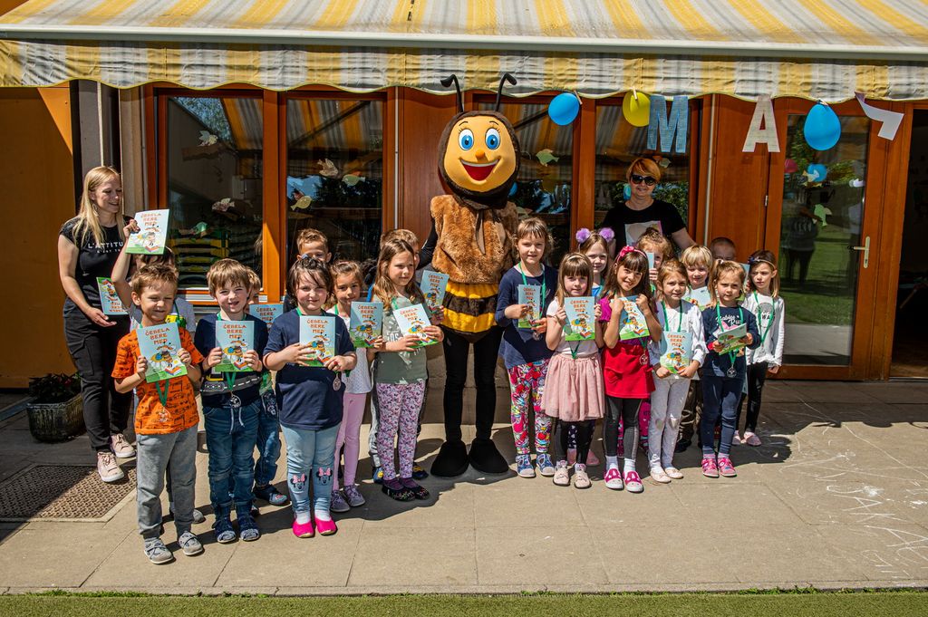 Mladi bralci so se najprej odpravili v preboldski Gaj, kjer so jim vzgojiteljice v treh ločenih skupinah pripravile pravljične urice s poustvarjanjem. Z zanimanjem so prisluhnili zgodbicam o zrcalcu, škratku Prehladku in najvišji gori knjig na svetu. Tudi zapeli so in zraven zaplesali. Slovesni zaključek je nato potekal na igrišču Vrtca Prebold. Z izbranimi besedami so otroke nagovorili mag. Marko Repnik, podžupan Občine Prebold, Peter Žurej, ravnatelj Osnovne šole Prebold, mag. Lea Felicijan, vodja Občinske knjižnice Prebold, in Mateja Matko, vodja Vrtca Prebold, ki je dogodek tudi povezovala. Toda glavno presenečenje je bilo šele na vrsti. Malim nadobudnežem je v sklopu projekta »Čebela BERE med!« prišla čestitat prikupna maskota čebelice. Ob pomoči knjižničarke Irene Verbič in Judite Železnik so otroci prejeli medalje in knjižice Čebela BERE med.