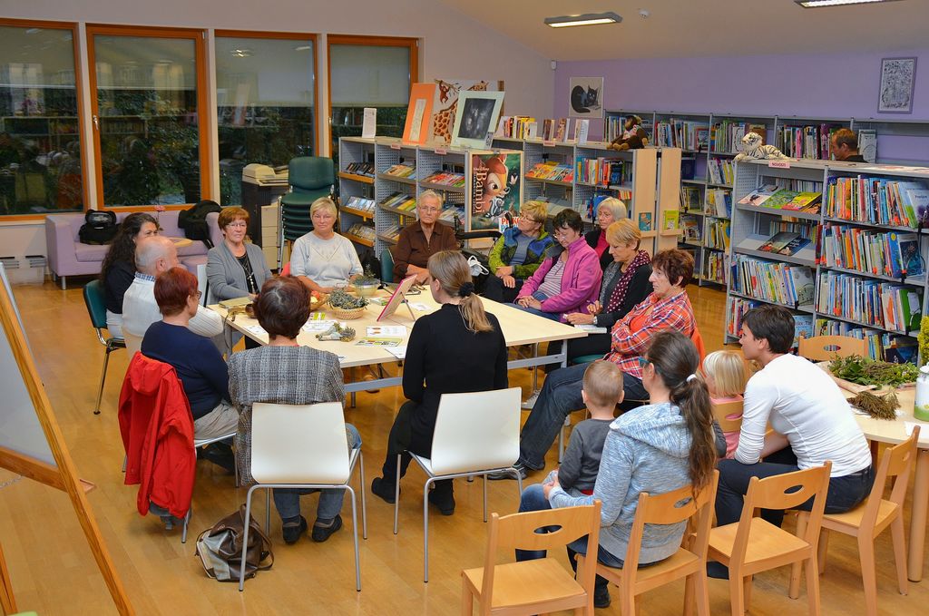 V torek, 3. oktobra 2017, smo v Občinski knjižnici Prebold izvedli zeliščarsko urico. Naša gostja je bila zeliščarica Kata Laštro, ki nam je v sklopu projekta Zelena pismenost predstavila svojo novo slikanico z naslovom Zeliščarica Kunigunda in rastline iz davnine. Po uvodnih zvokih gonga smo skozi zgodbo in pesmi spoznali značilnosti vsake zeliščarice: »Zeliščarica ima zelene roke in modre možgane, obvlada zeleno pismenost ter spoštuje zakone narave.« Zeliščarski red zahteva »s soncem vstati, opazovati, raziskovati, iti na pravo mesto, kjer raste določena rastlina«. Tako nas je avtorica popeljala po »pisani cvetlični preprogi«, stkani iz raznovrstnih zelišč. Zelišča, ki nam jih je predstavila, so večinoma neopazna in vsakdanja, a v naravi nepogrešljiva. »S to slikanico apeliram na ohranjanje vseh vrst avtohtonih rastlin: dreves, grmovnic, zelišč, trav in plevelov, žit, ki na naših tleh uspevajo od vekomaj, prav tako apeliram, naj se ohranja tradicionalno zeliščarstvo oziroma dejavnost, ki je prispevala k ohranjanju naravne in kulturne dediščine,« je poudarila gostja. Sledila je ustvarjalna delavnica izdelave okraskov – nastal je herbarij na ploščicah iz slanega testa. Zeliščarno smo sklenili s prepoznavanjem številnih rastlin in se poučili o njihovih zdravilnih učinkih. Da pa je bila »zeliščarovnija« popolna, je vsakdo lahko okusil domač zeliščni čaj, pripravljen iz lastne kombinacije zelišč. »Naj zeleni in raste kot nekoč. Naj bo ves svet pisan in cvetoč,« se je poslovila gostja in nam še enkrat zaigrala na gong.
