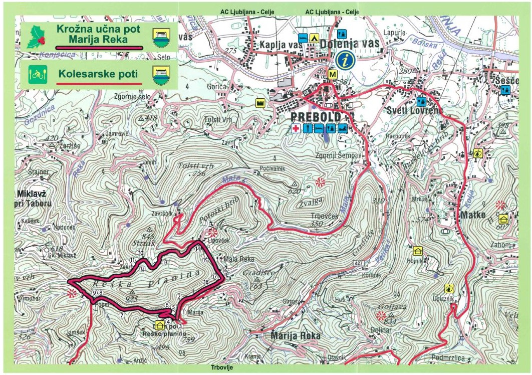 Občina Prebold je krožno učno pot uredila v okviru javnega razpisa LAS SSD, ki je sofinanciran iz Evropskega kmetijskega sklada v sodelovanju z Lovsko družino Prebold, Planinskim društvom Prebold in Osnovno šolo Prebold, pomagali pa so tudi mnogi prostovoljci. Na 5 km dolgi poti je 18 postaj, na katerih so predstavljeni gozd in drevesne vrste, živali, zdravilna zelišča, travniške rastline in geološkim stolpcem, ki je eden redkih v Sloveniji. Obiskovalci poti si lahko ogledajo lovsko prežo, krmišče, solnico, oboro, ptičje valilnice in krmilnice. Urejena sta tudi planinski kotiček s plezalno steno in učilnica na prostem. Ob poti sta dve kapelici in cerkev Marijinega Vnebovzetja iz 15. stoletja. Enotne razlagalne table imajo oznako bodike, drevesa leta 2009. Odprtja krožne učne poti so se v okviru športnega dneva zadnji petek pouka v letošnjem šolskem letu udeležili vsi učenci preboldske šole, ki so pripravili tudi krajši kulturni program, nagovorili pa so jih ravnatelj Oton Račečič , župan Vinko Debelak in podžupan Franc Škrabe. Ravnatelj je povedal, da je tudi šola predlagala učne poti, saj v Mariji Reki vsako leto oraganizira dva do tri tabore.