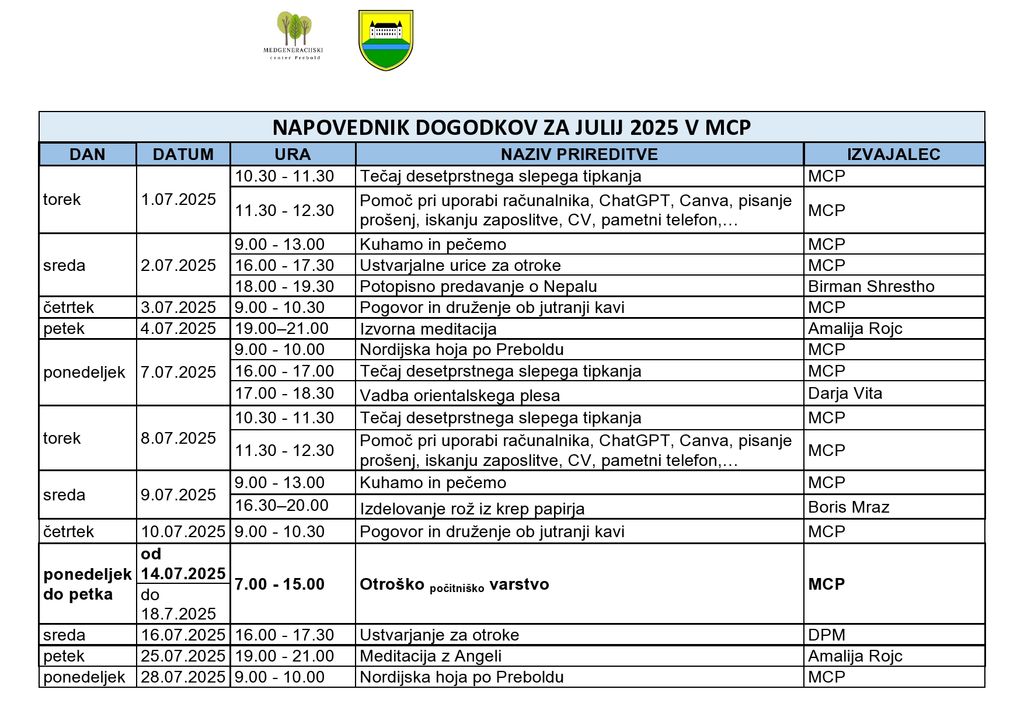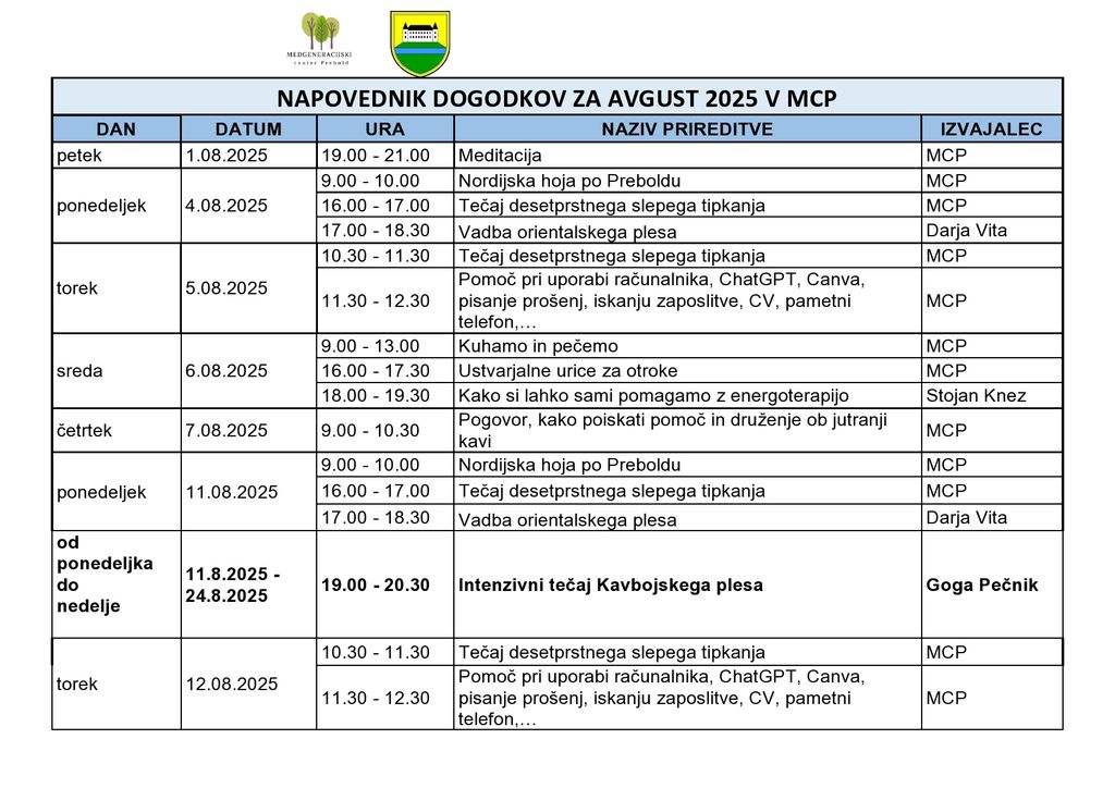 Za vse generacije pripravljamo zanimive dejavnosti, nova znanja, sprostitev in obilo prijetnega druženja.