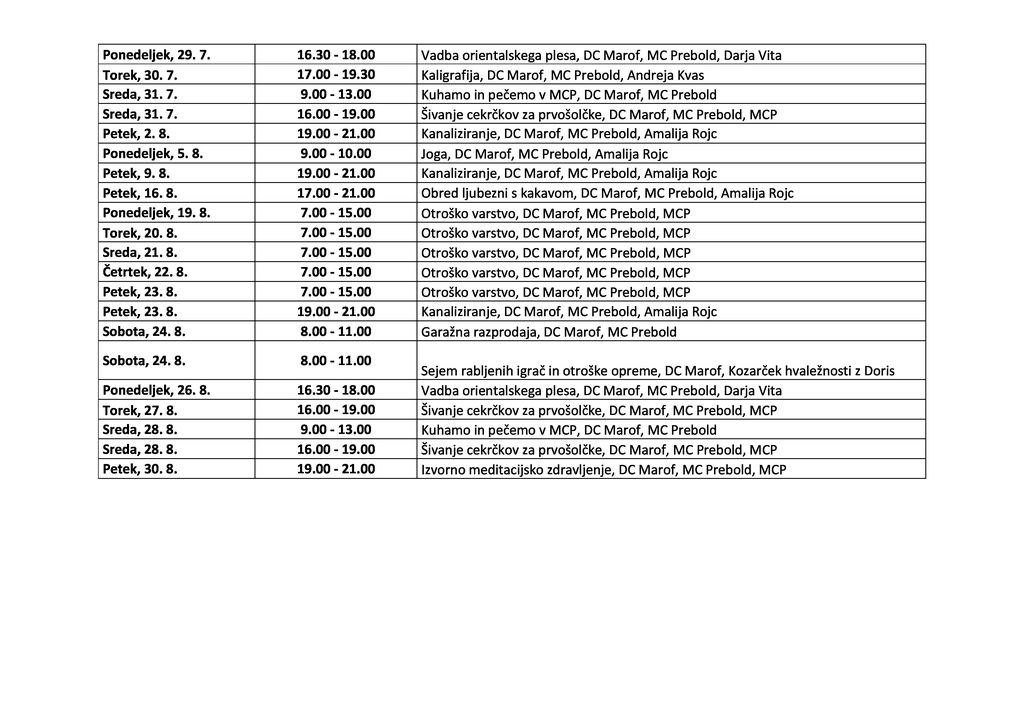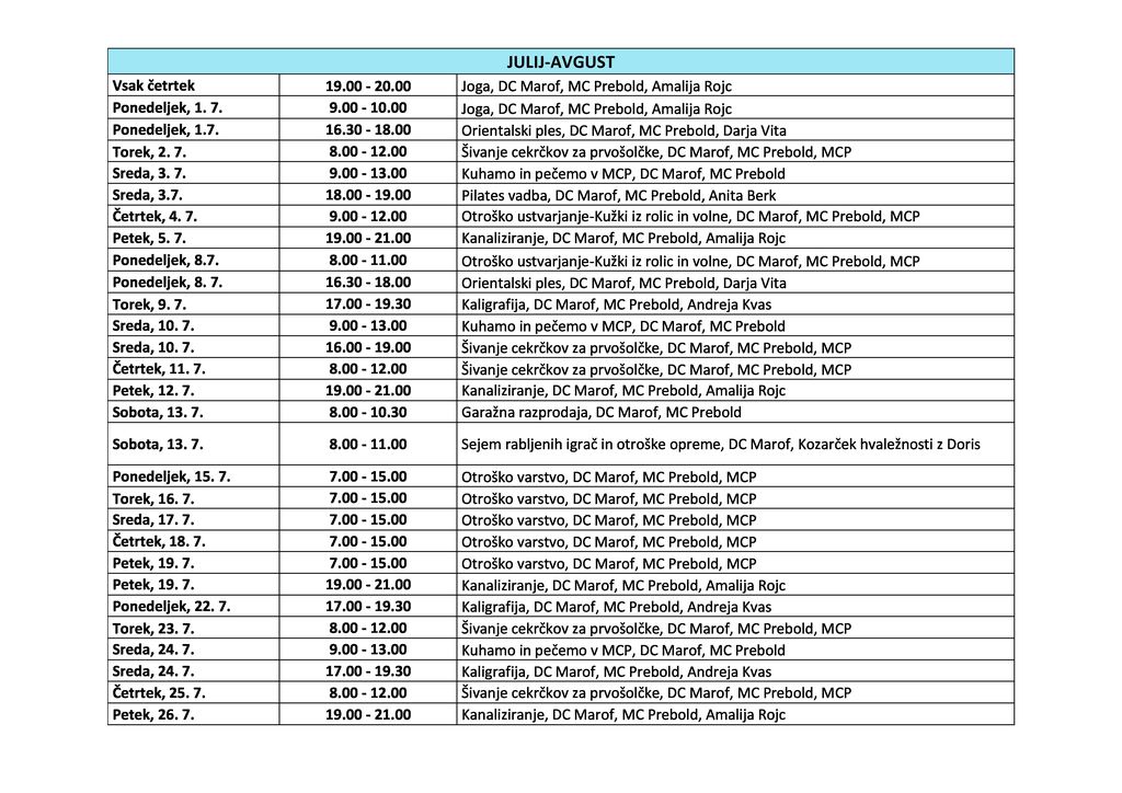 Mesečni program za meseca JULIJ IN AVGUST, Medgeneracijskega centra Prebold.
