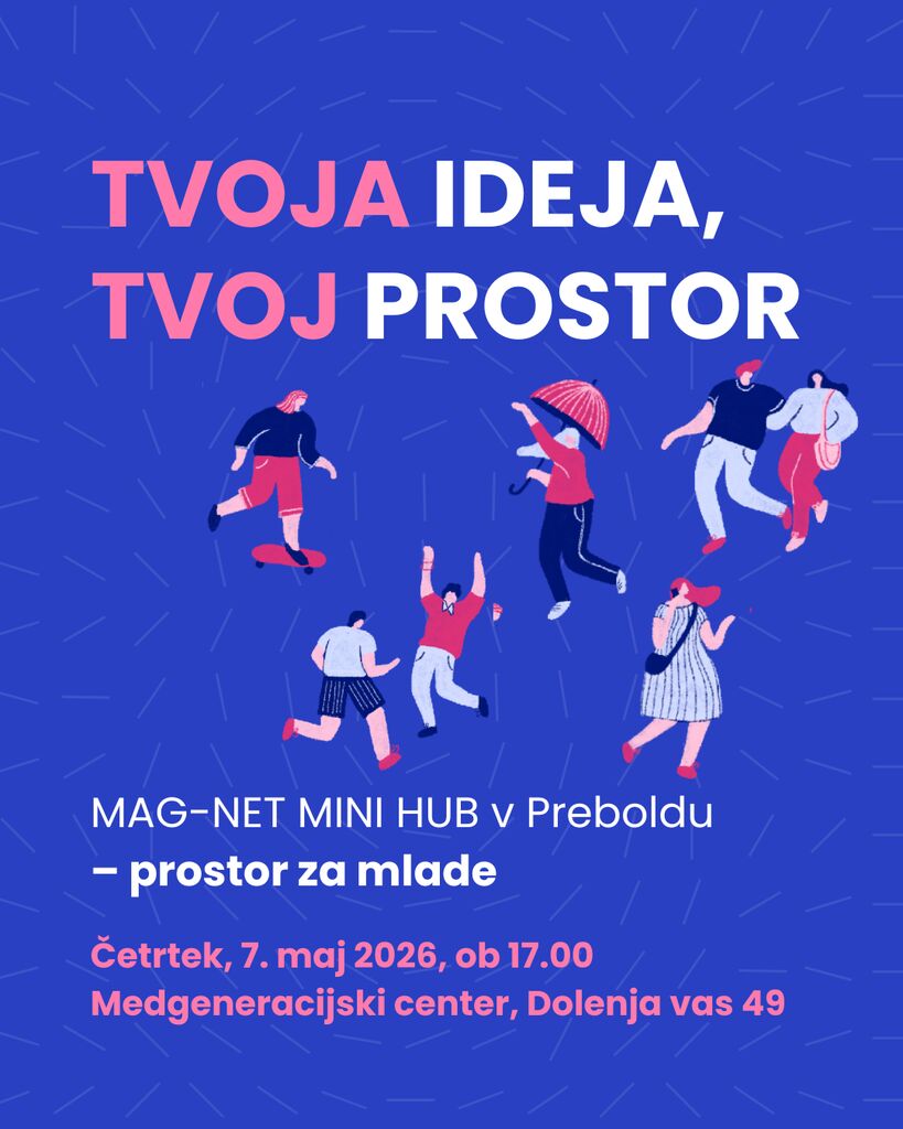 Zdaj imaš priložnost, da ga pomagaš ustvariti. V okviru Zavezništva MAG-NET nastaja MAG-NET MINI HUB v Preboldu – prostor za mlade, ki bo oblikovan skupaj z vami. Zato pridi in povej: kaj v Preboldu manjka, kaj bi moral tak prostor imeti, in kaj bi tam radi počeli